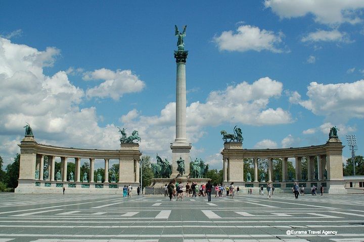Next, the tour continues up the Gellért Hill, where you’ll have a photo stop and time to take in the great views over all of Budapest. After this stop the coach will take you across the Elizabeth Bridge and along Andrássy Avenue to Heroes’ Square.